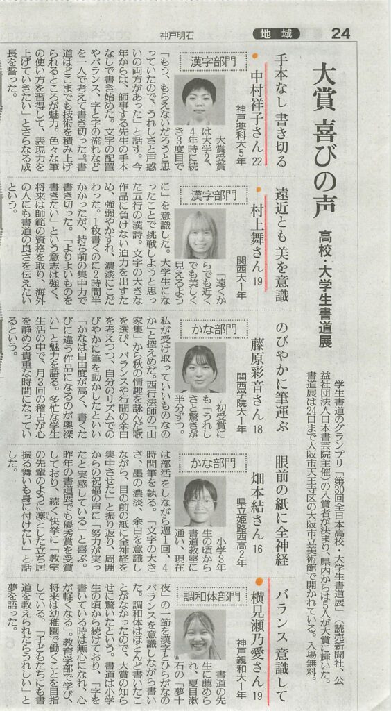 ※書道展大賞・書道展賞・優秀賞受賞作品のみ展示